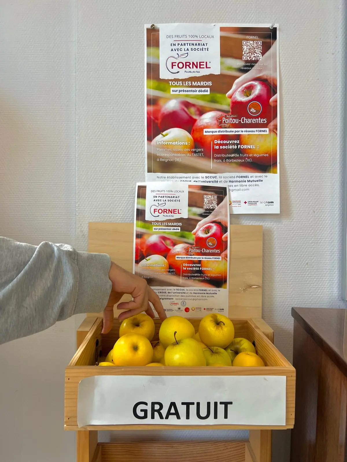Au cours de l'année ce sont 11 tonnes de pommes qui sont distribués dans les 8 établissements du SCCUC qui ont décidé de mettre à disposition de leurs élèves des pommes gratuites et en libre accès.